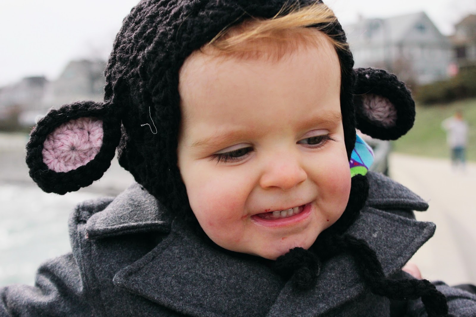After that I made carrot cake pancakes (yum!), opened the windows and were lazy all morning. After her nap we went on a walk to the beach. It was way colder than I thought it was going to be. She didn't care. She walked along the wall, holding Dave's hand and getting splashed by waves. It was a pretty good day.